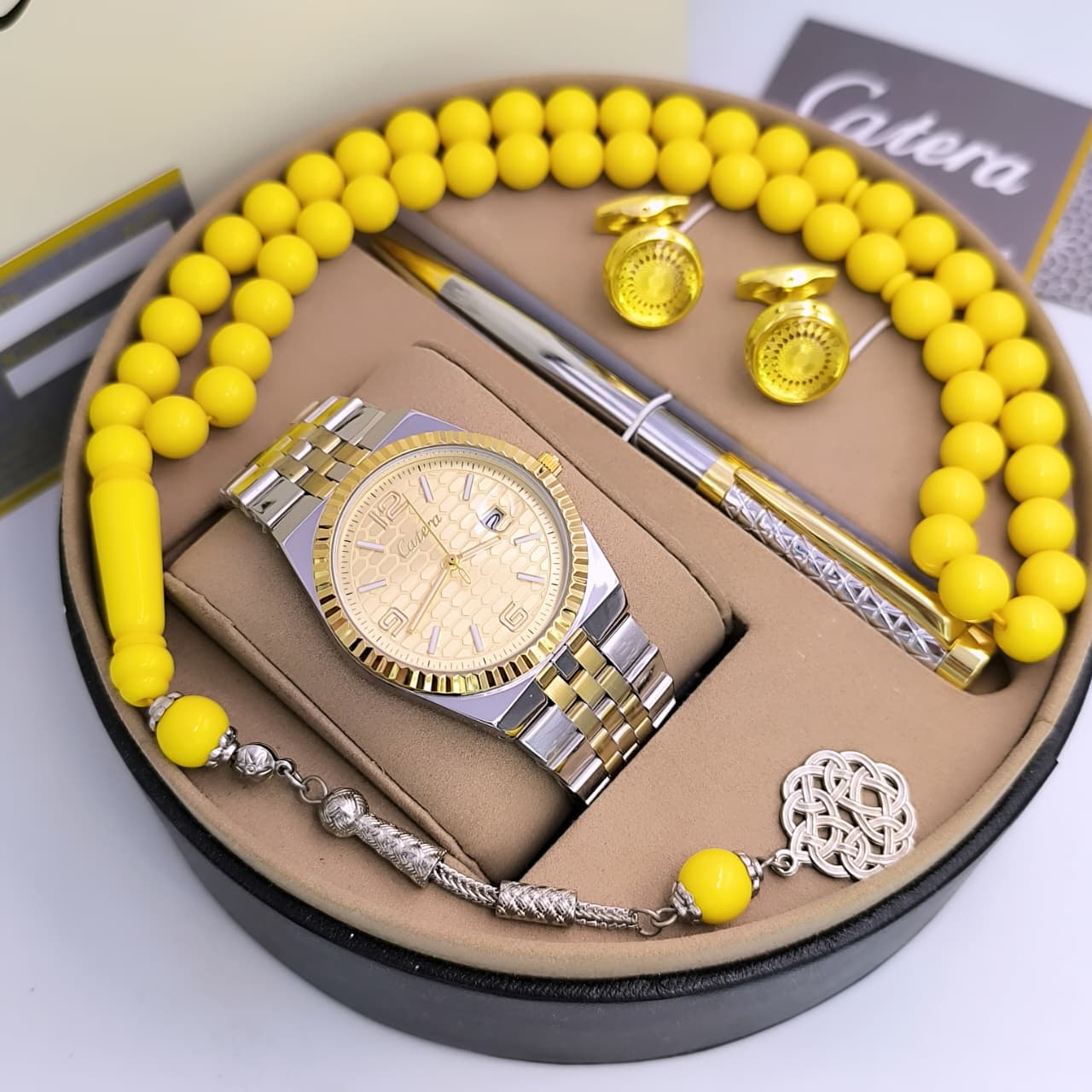 ساعة بلون ذهبي أنيق مع تفاصيل فاخرة، تمنحك حضوراً راقياً في كل مكان.